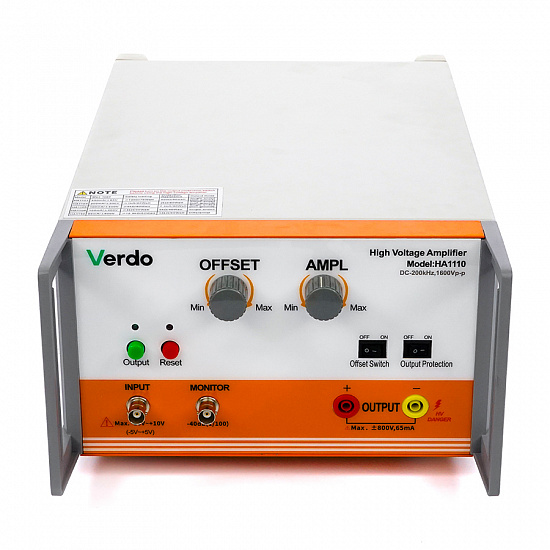 VERDO HA1110 представляет собой высокоэффективный усилитель высокого напряжения, предназначенный для проведения испытаний и измерений. Устройство отличается доступной стоимостью и простотой эксплуатации. Максимальное выходное напряжение достигает 1600 В, что обеспечивает широкий спектр возможностей для применения.