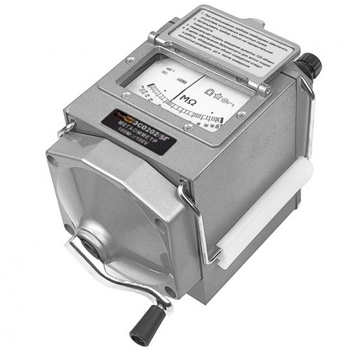 Мегаомметр ПрофКиП ЭСО202/5Г (измеритель сопротивления изоляции ПрофКиП ЭСО202/5Г) создан для измерения сопротивления изоляции электрических цепей, не находящихся под напряжением. Мегаомметр ПрофКиП ЭСО202/5Г применяются для измерения сопротивления изоляции электрической проводов, кабелей, разъёмов, трансформаторов, обмоток электрических машин и других устройств, а также для измерения поверхностных и объемных сопротивлений изоляционных материалов. Питание мегаомметра ПрофКиП ЭСО202/5Г осуществляется от встроенного электромеханического генератора.