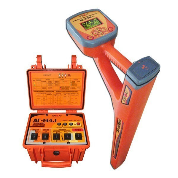Морозоустойчивый трассопоисковый комплект с мощным генератором, с моноблочным приемником с графическим OLED-индикатором, высокой помехозащищенностью, с частотами генератора 512, 1024 и 8192 и возможностью подключения внешних датчиков.